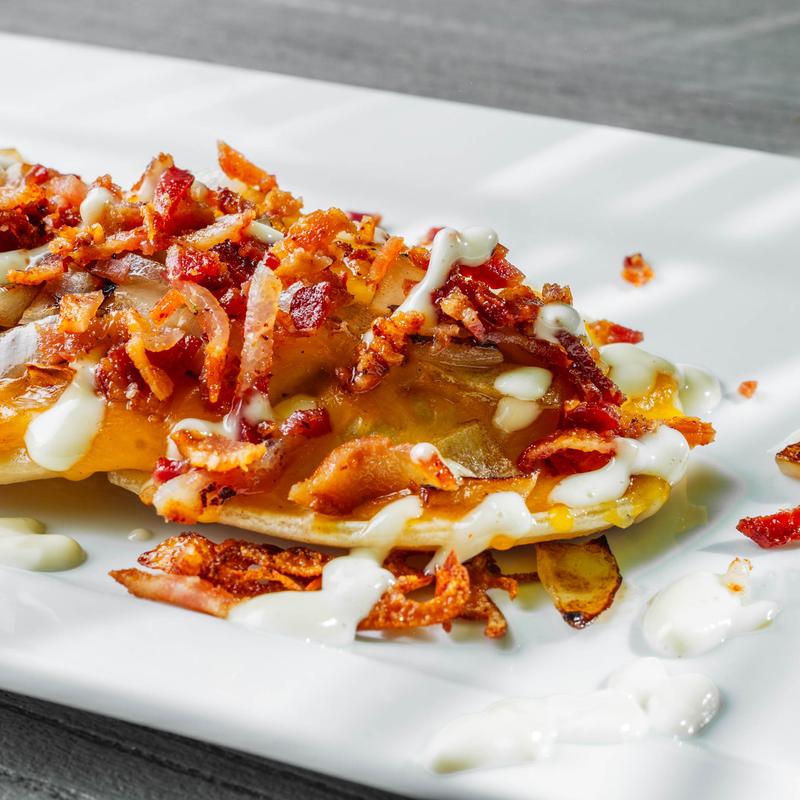 Sidewinder fries topped with bacon, melted cheese and ranch dressing.